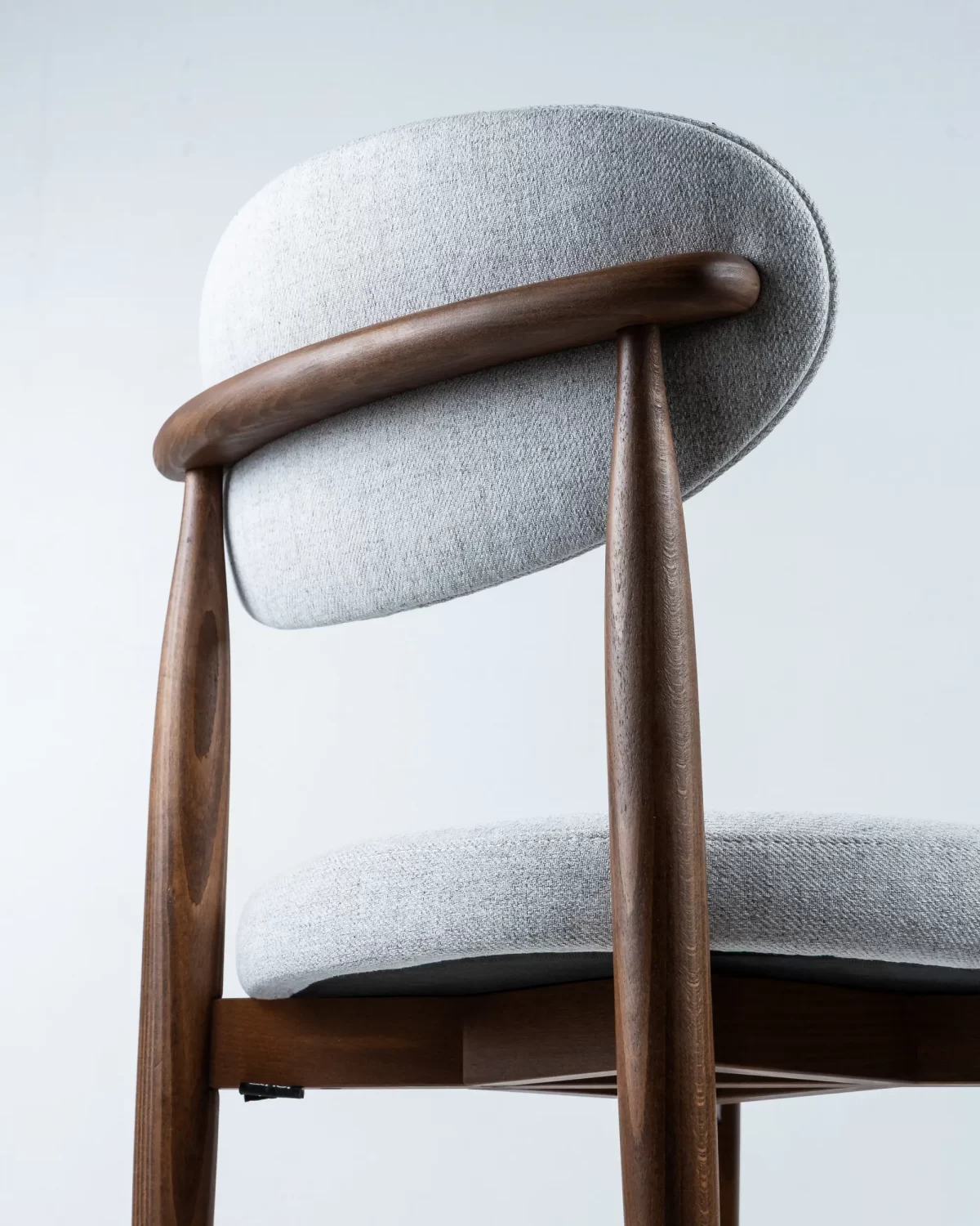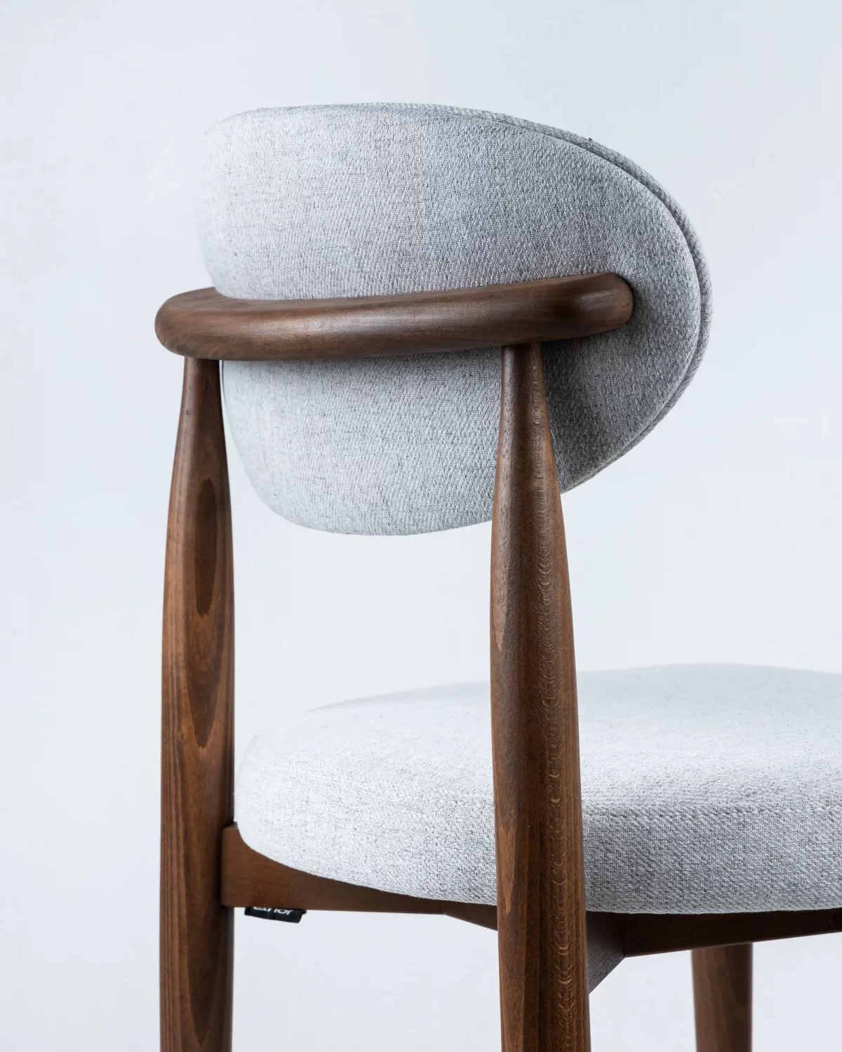 Made from high-quality beech wood, this chair features a clean and minimalist design with a uniquely shaped backrest for added style and support. The cushioned seat and backrest provide comfort for everyday use, while the solid wooden frame ensures durability and stability. Its refined look makes it perfect for dining areas, cafés, or contemporary interiors. Available in a variety of colors, it can be customized to fit any space effortlessly.